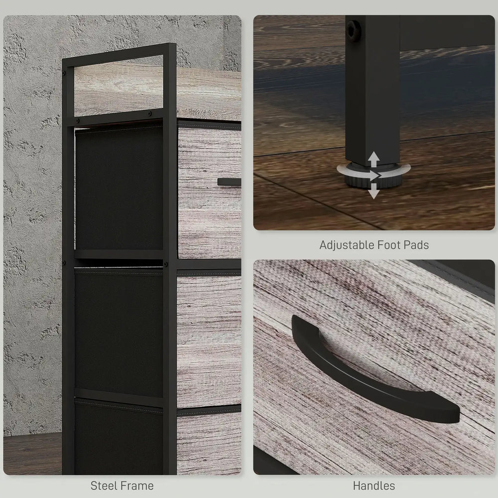 HOMCOM Rustic Chest of Four Fabric Drawers - Grey Wood Effect