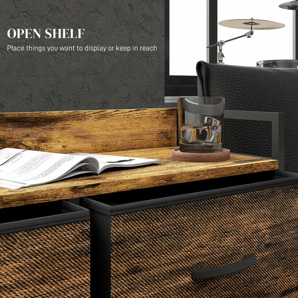 HOMCOM Rustic Chest of Six Fabric Drawers - Rustic Brown