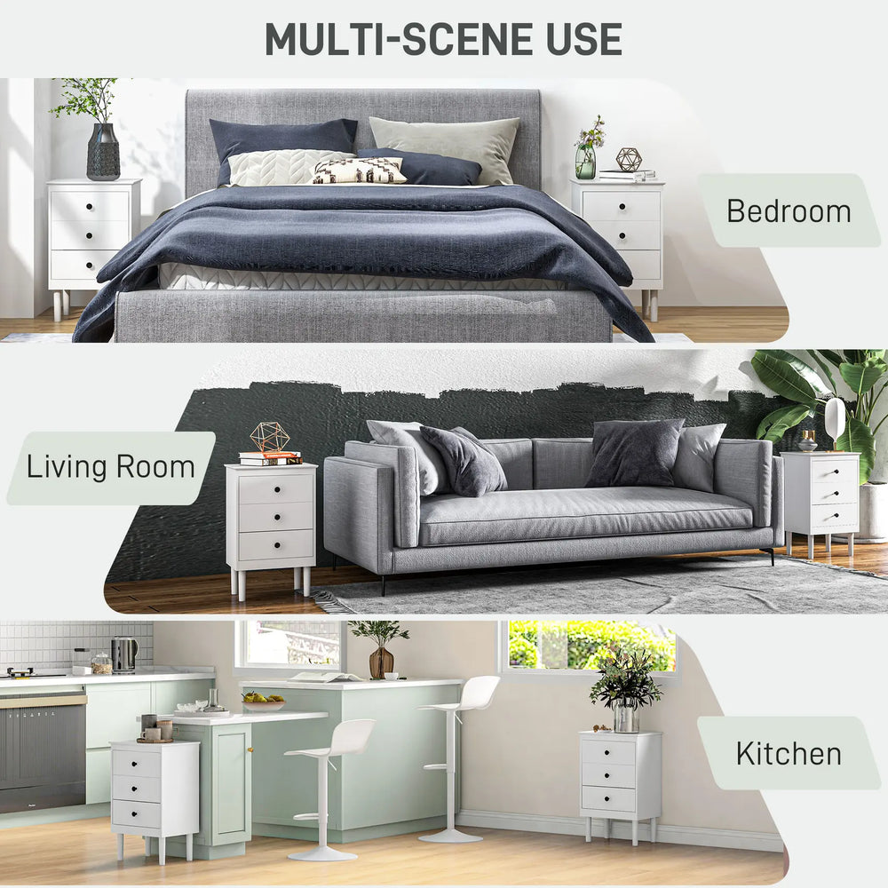 HOMCOM Set of Two Three-Drawer Bedside Tables - White