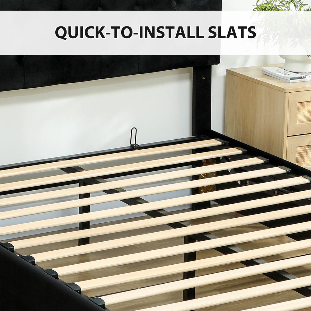 HOMCOM Double Ottoman Bed Frame, with Front Drawer - Black