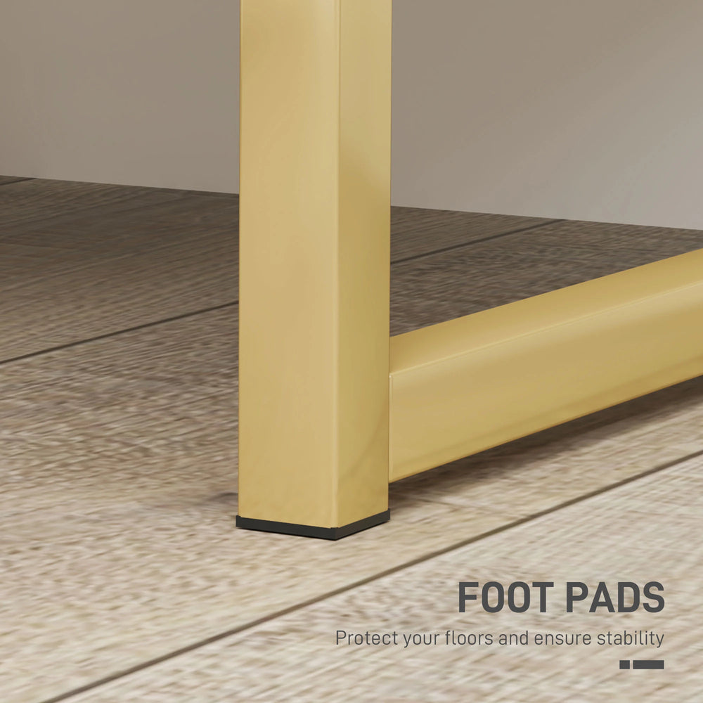 A bedroom essential, in bold and elegant style with this HOMCOM nightstand. The top ridged drawer front and gold coloured handles add a beautiful touch to the solid colour. With two drawers and a flat tabletop, there's lots of storage for bedtime essentials and more. Complete with a metal base for strong support.
