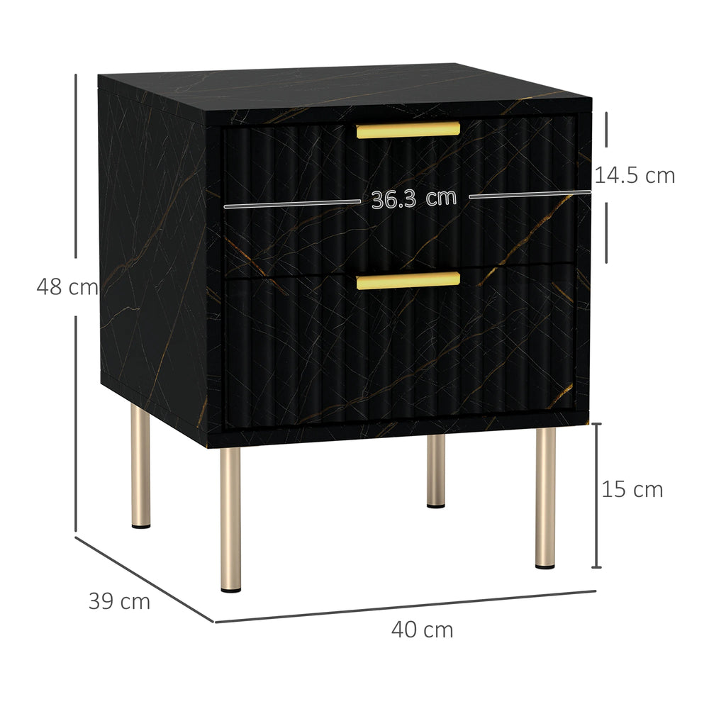 Thanks to the marble-inspired design of this HOMCOM bedside table, this is an elegant touch to your bedrooms and beyond. The two drawers offer plenty of space for keeping essentials close to you. Doubles as up as an end table throughout the home.