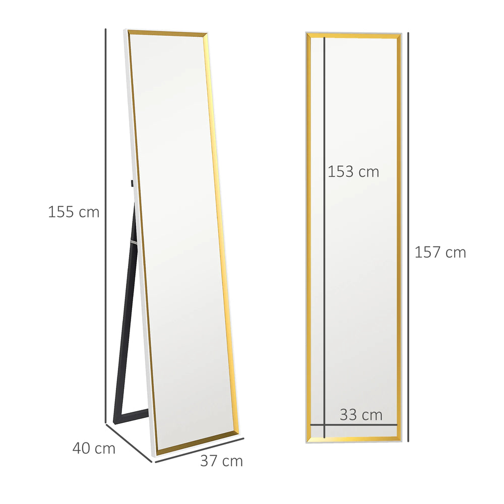 Everyday elegance, with a home essential - this HOMCOM full length mirror. Measuring 157 x 37cm, it offers a complete head-to-toe view - be confident in your outfit before leaving the house. It can be left standing with the back leg, leaned or fixed to a wall of your choice. With the white and gold-tone frame, this is a beautiful addition to your space, however you decide to fix it.
