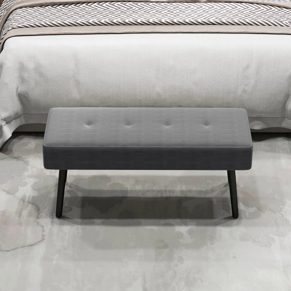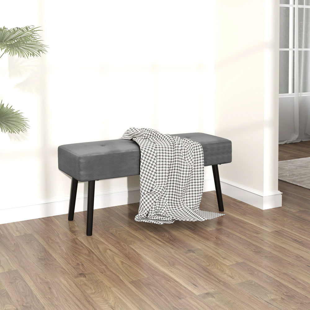 HOMCOM End of Bed Bench, Corduroy Bedroom Bench with Thick Padding and Steel Legs, Tufted Window Seat for Entryway, Living Room, Grey is backordered and will ship as soon as it is back in stock.