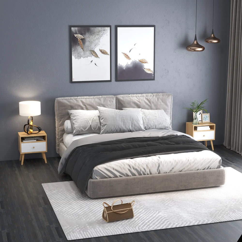 - STURDY: Structure made from particle board for durability. Angled legs help keep nightstand steady and balanced, with footpads to protect your floor lightly. Anti-tipping straps for safety.