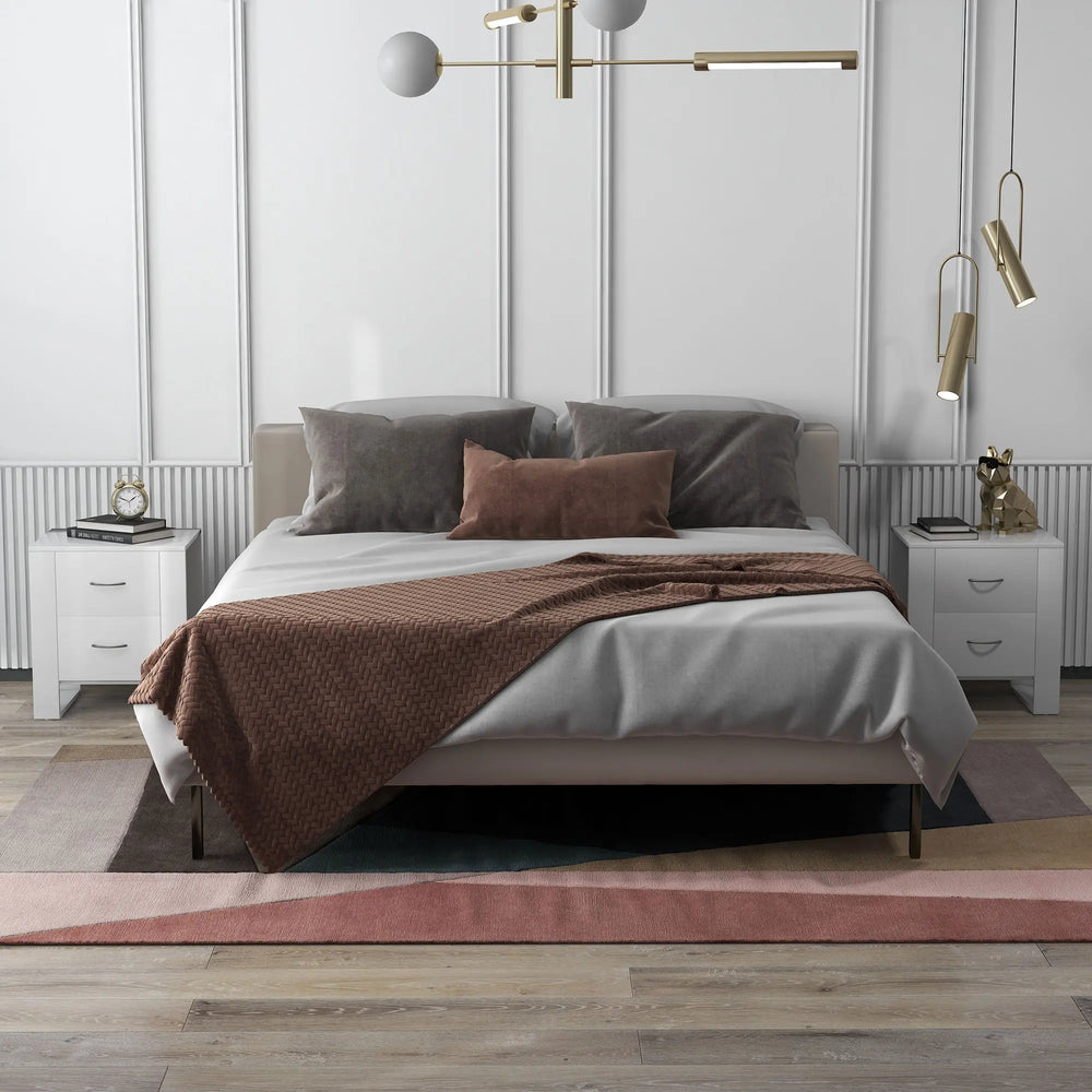 - Two-drawer: This bedside cabinet provides plenty of room to keep all your bedtime and bedroom essentials stored and within close and easy reach to you. Silver tone handles for easy opening of the draws.