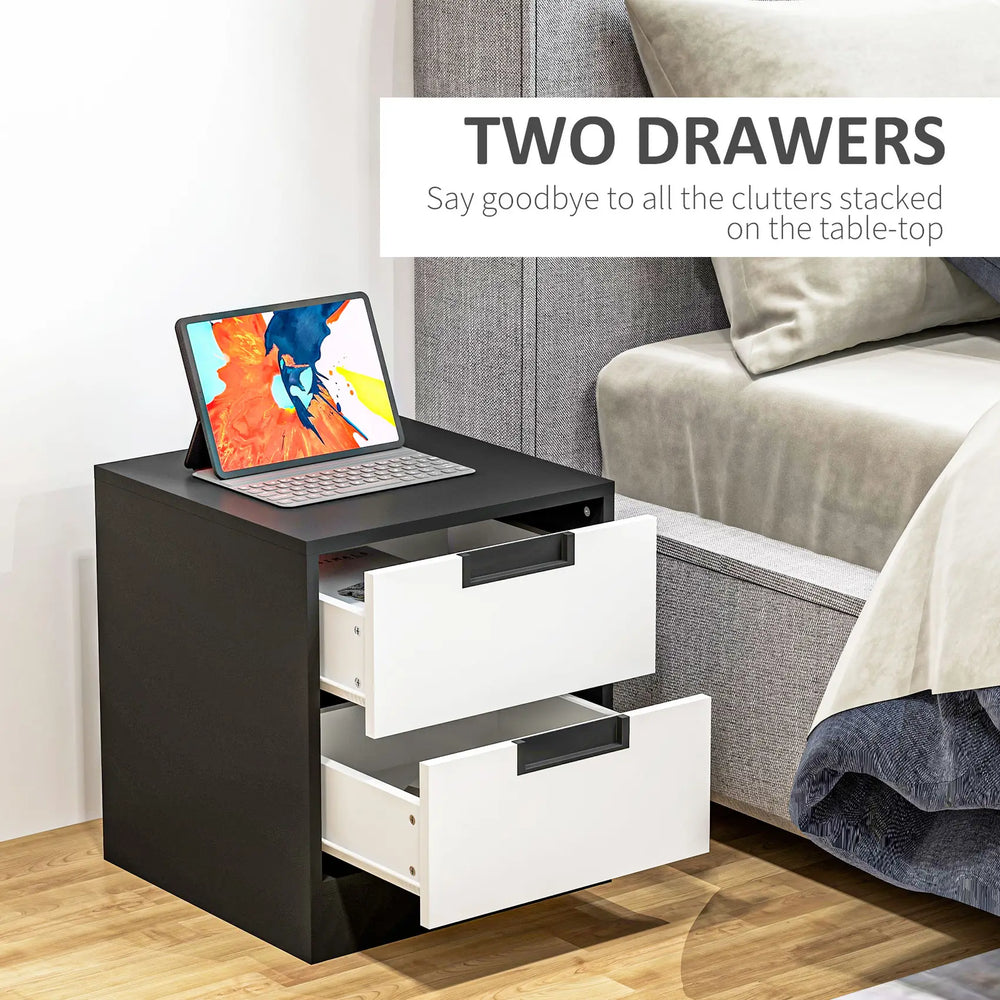 - Sleek modern design: Available in white and black, this 2 door wardrobe, drawer chest and side tables set complements any bedroom dcor, adding a contemporary touch to your space.