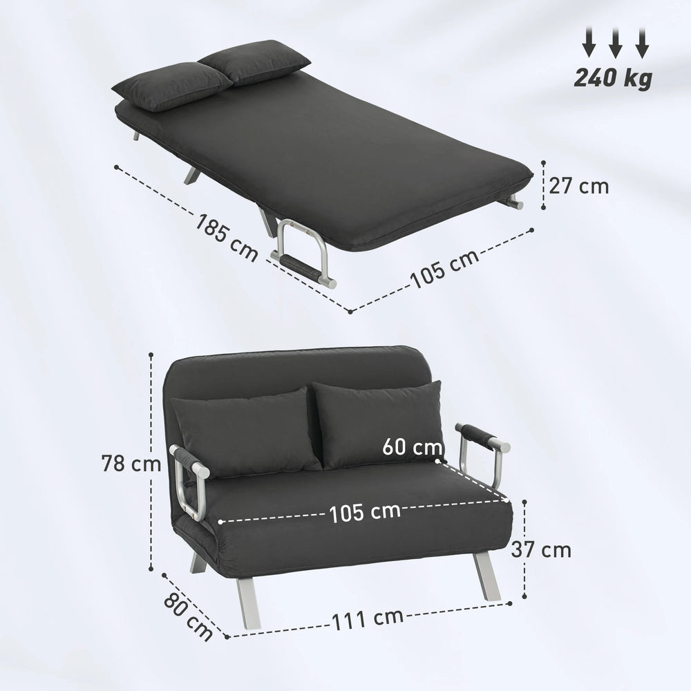 HOMCOM Two-Seater Click-Clack Sofa Bed - Charcoal Grey