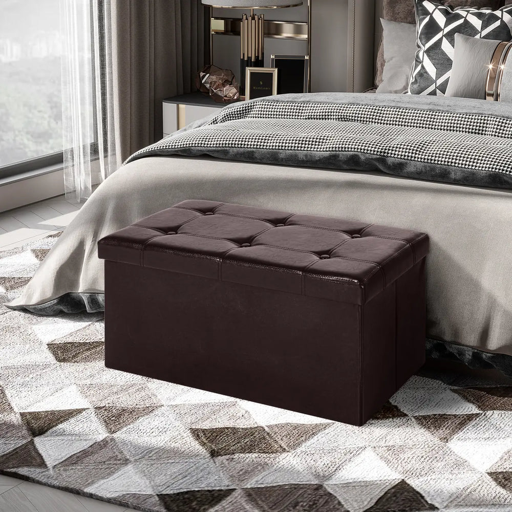 HOMCOM Folding Faux Leather Storage Cube Ottoman Bench Seat PU Rectangular Footrest Stool Box (Brown)