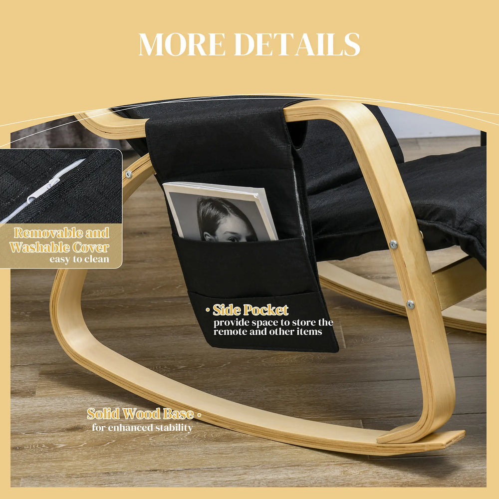 HOMCOM Rocking Lounge Chair Recliner Relaxation Lounging Relaxing Seat with Adjustable Footrest, Side Pocket and Pillow, Black
