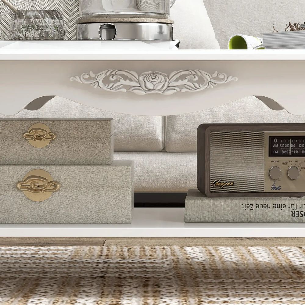 HOMCOM White Coffee Table Wood Cocktail Tea Centre Table with Storage Shelf for Living Room Reception Room, 94L x 44W x 42H cm