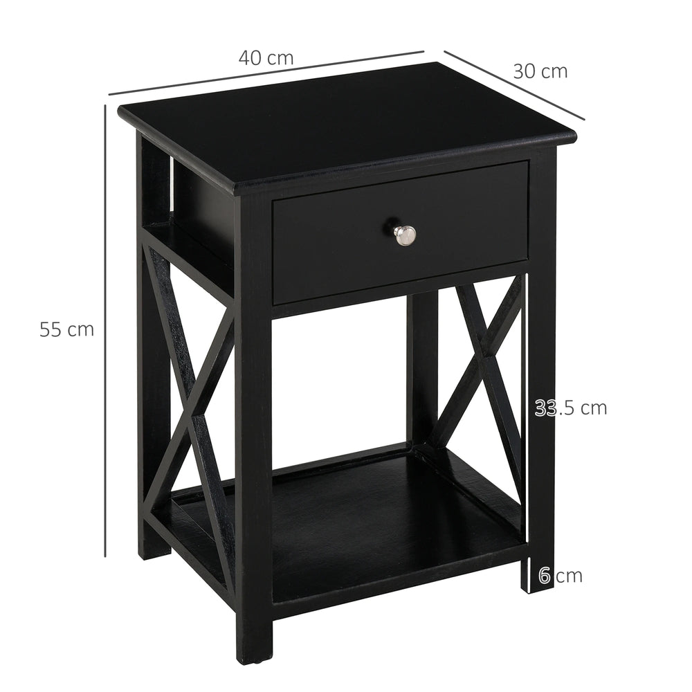 HOMCOM End Table, Sofa Side Table with Drawer X Bar Bottom Storage Shelf, Nightstand Bedside Table for Bedroom or Living Room Black