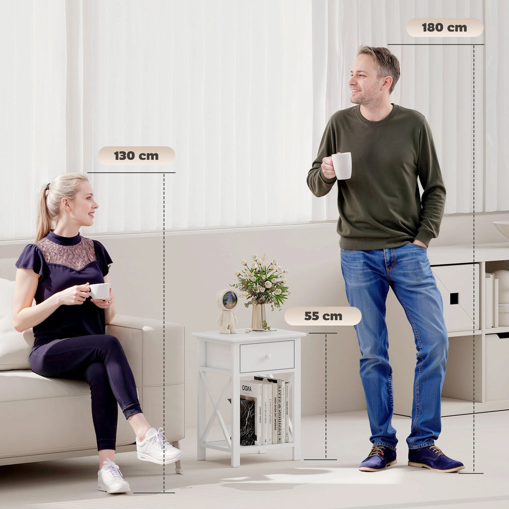 HOMCOM End Table, Sofa Side Table with Drawer X Bar Bottom Storage Shelf, Nightstand Bedside Table for Bedroom or Living Room White