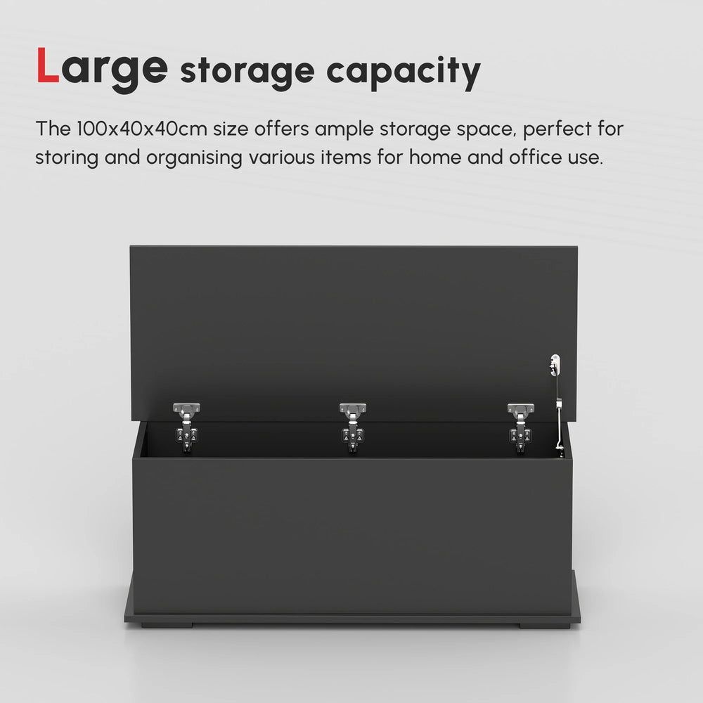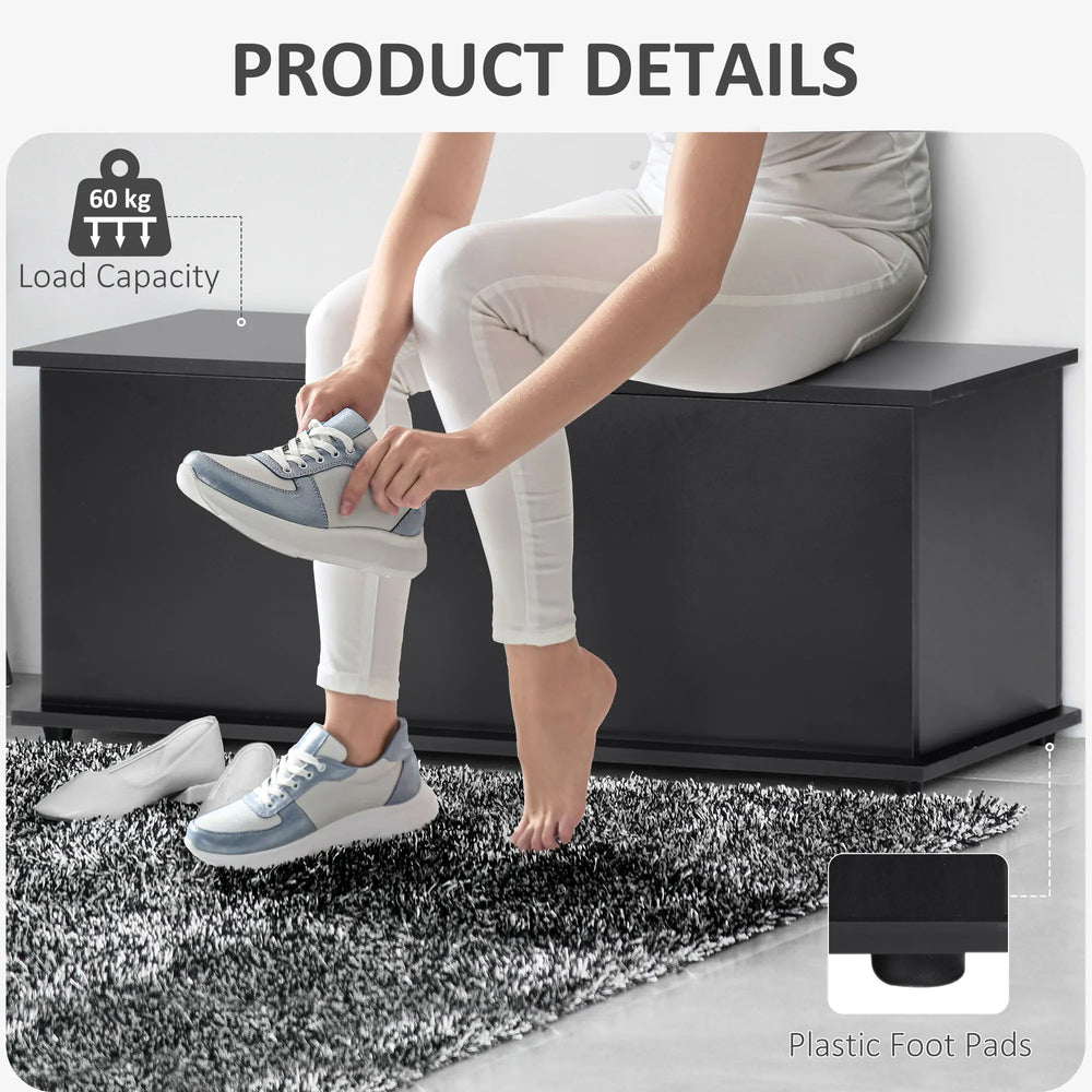 HOMCOM 113L Storage Chest, Storage Box with Flip-Top Lid and 2 Safety Hinges, Storage Trunk for Living Room, Entryway, 100 x 40 x 40 cm, Black
