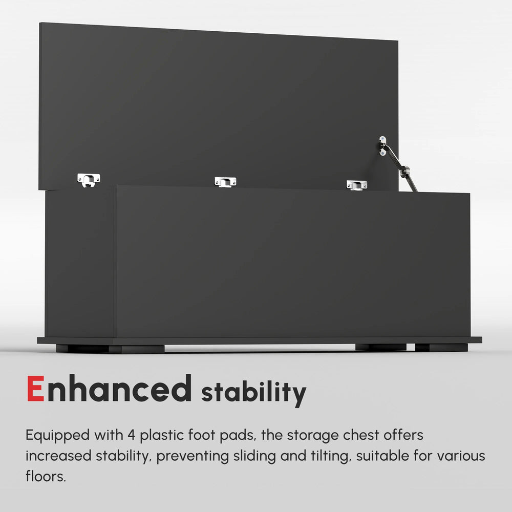HOMCOM 113L Storage Chest, Storage Box with Flip-Top Lid and 2 Safety Hinges, Storage Trunk for Living Room, Entryway, 100 x 40 x 40 cm, Black is backordered and will ship as soon as it is back in stock.