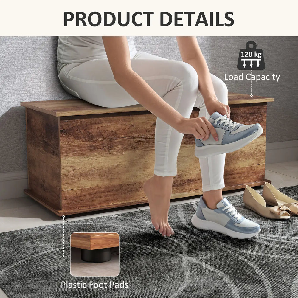HOMCOM 113L Storage Chest, Storage Box with Flip-Top Lid and 2 Safety Hinges, Storage Trunk for Living Room, Entryway, 100 x 40 x 40 cm, Brown Wood Grain