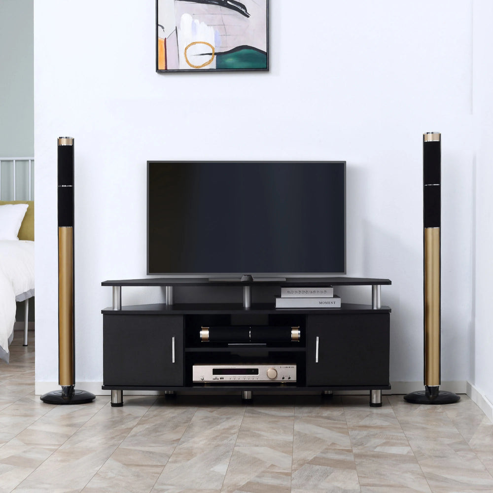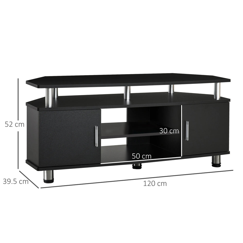 Elevate your entertainment space with this HOMCOM entertainment unit. Combines two middle shelves and two cupboards for storage - so you'll keep everything tidy, with a 120cm top shelf for holding your TV screen/monitor. Made from particle board, the body is stable, with aluminium accents to support the whole unit. Finished with handles on the doors to open and close easily.