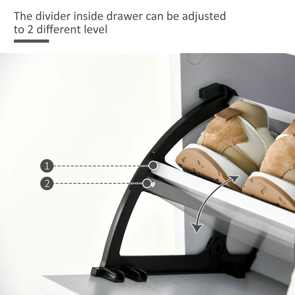 HOMCOM Shoe Cabinet with 3 Flip Drawers, High Gloss Shoe Storage Cabinet with Top Drawer and Adjustable Shelves, Shoe Cupboard for 18 Pairs, White