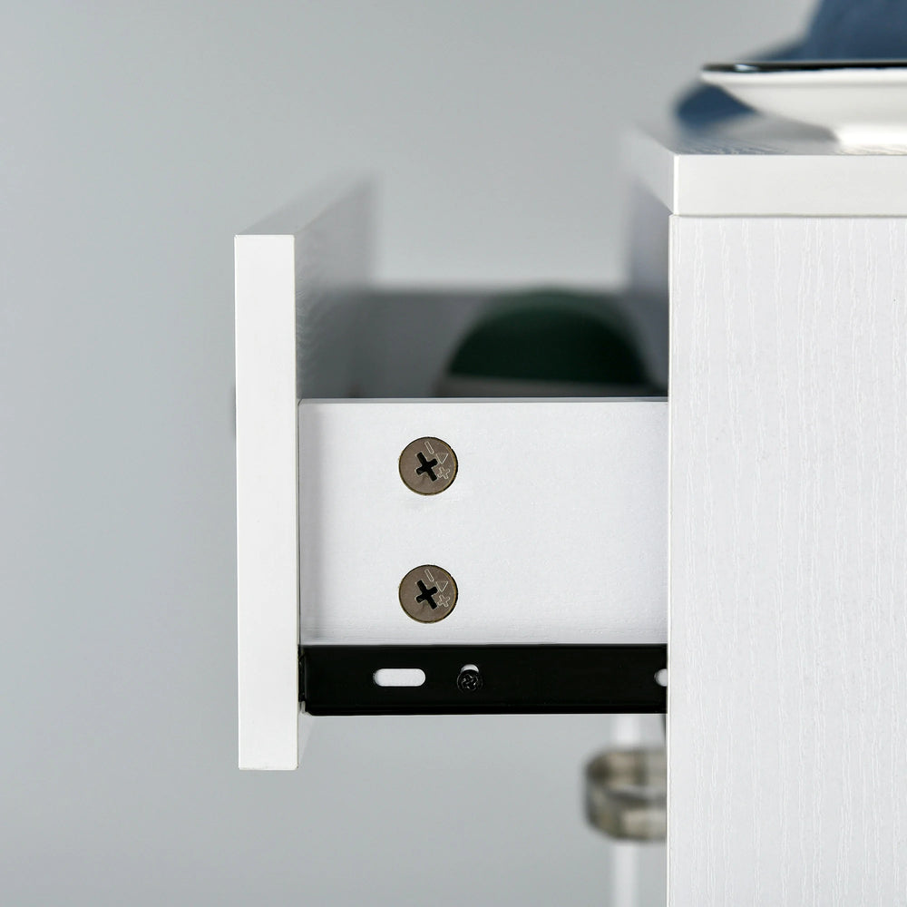 - Features a slide-out drawer and three tipping drawers, plenty of storage