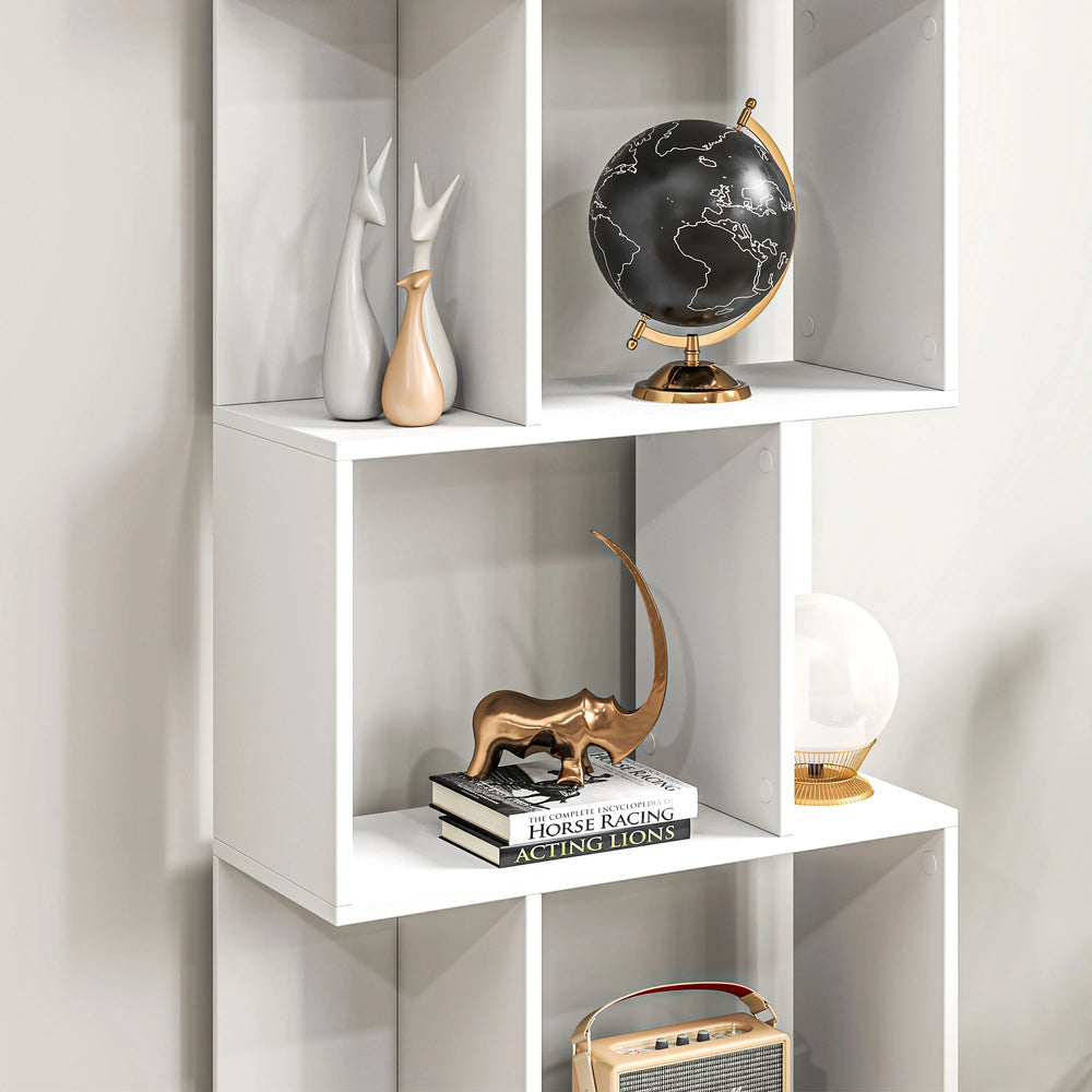 Tired of the same old look? Break away from the norm with the unique and contemporary style of this S-shape bookcase from HOMCOM. Five shelves of storage make it easy to display your favourite books, photos, collectables and more. Most important, thanks to an open-back design, it doubles as a bookshelf and room divider.