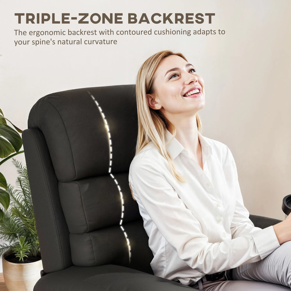 This manual reclining chair with footrest, from HOMCOM, is a good addition to any room in your home. Thick sponge wrapped in PU leather, making this cinema chair provide comfort and show a stylish appearance. Our cinema seats recline easily, so you can sit upright to work, lounge back to watch TV, or adjust the backrest to a fully reclined position for a nap. Comfortably, the footrest can extend from the front to let you stretch your legs and is easily retractable when not in use.