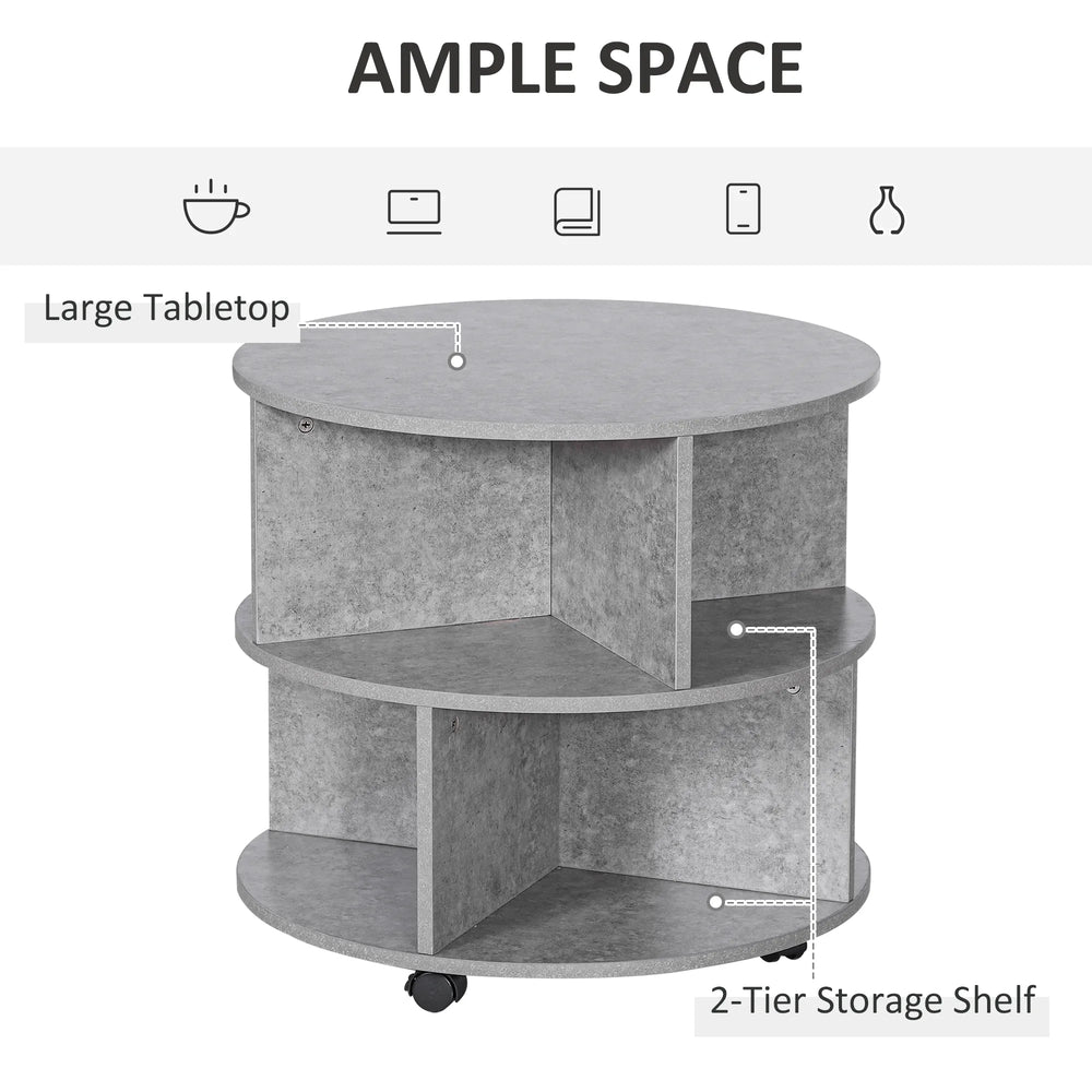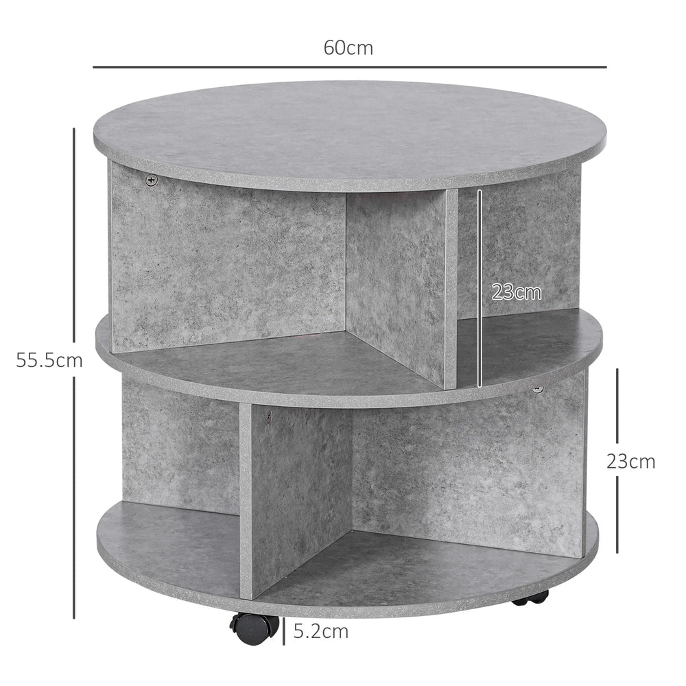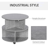 HOMCOM Round Coffee Table with Wheels, 3-Tier Rolling Side Table for Living Room with Divided Shelves, Cement Colour