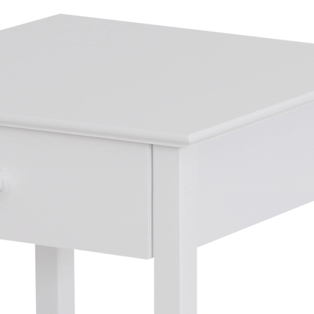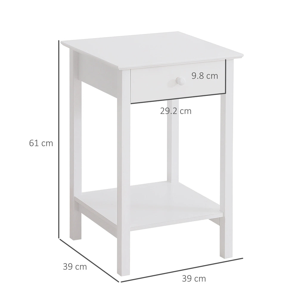 Bring elegance into your home dcor with this sleek and stylish side table from HOMCOM. In a fresh white finish, it features a spacious drawer with handle and a bottom shelf, making it perfect for storage and organisation in your bedroom, kitchen, living room or hallway. Crafted into a spacious, yet compact design, it is ideal for smaller areas of the home and its smooth surface allows it to be cleaned easy. A smart and fresh piece of furniture for every home.