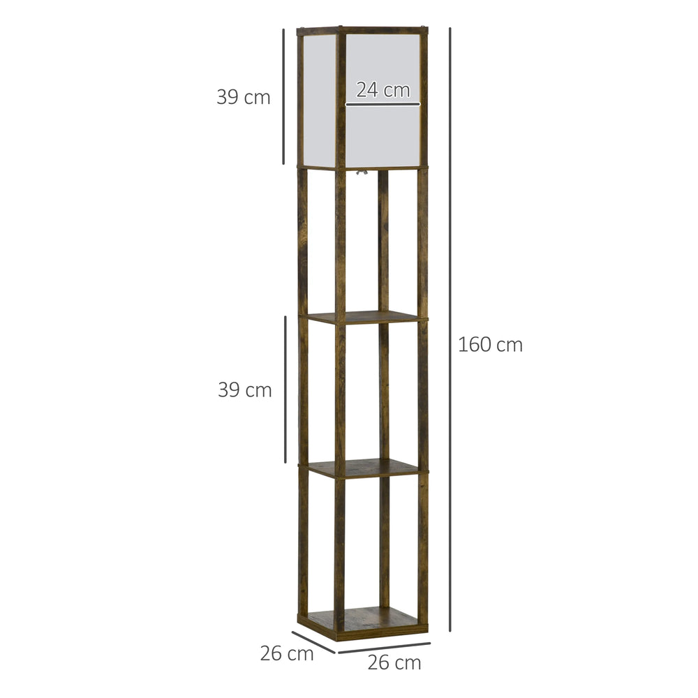 HOMCOM 3-Tier Floor Lamp, Floor Light with Storage Shelf, Reading Standing Lamp with Acrylic Shade for Living Room, Bedroom, Kitchen, Dining Room, Office, Dorm, 160cm, Brown