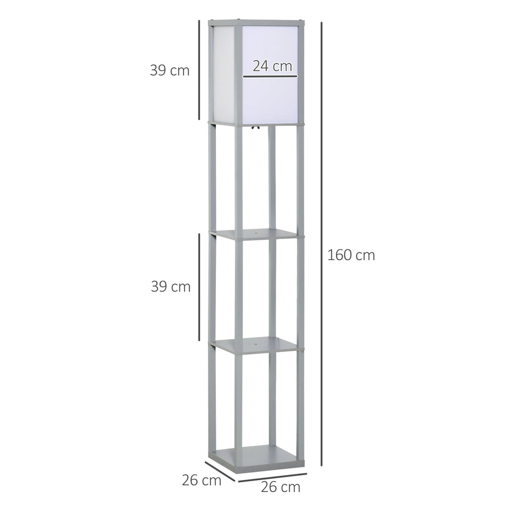 HOMCOM 3-Tier Floor Lamp, Floor Light with Storage Shelf, Reading Standing Lamp with Acrylic Shade for Living Room, Bedroom, Kitchen, Dining Room, Office, Dorm, 160cm, Grey