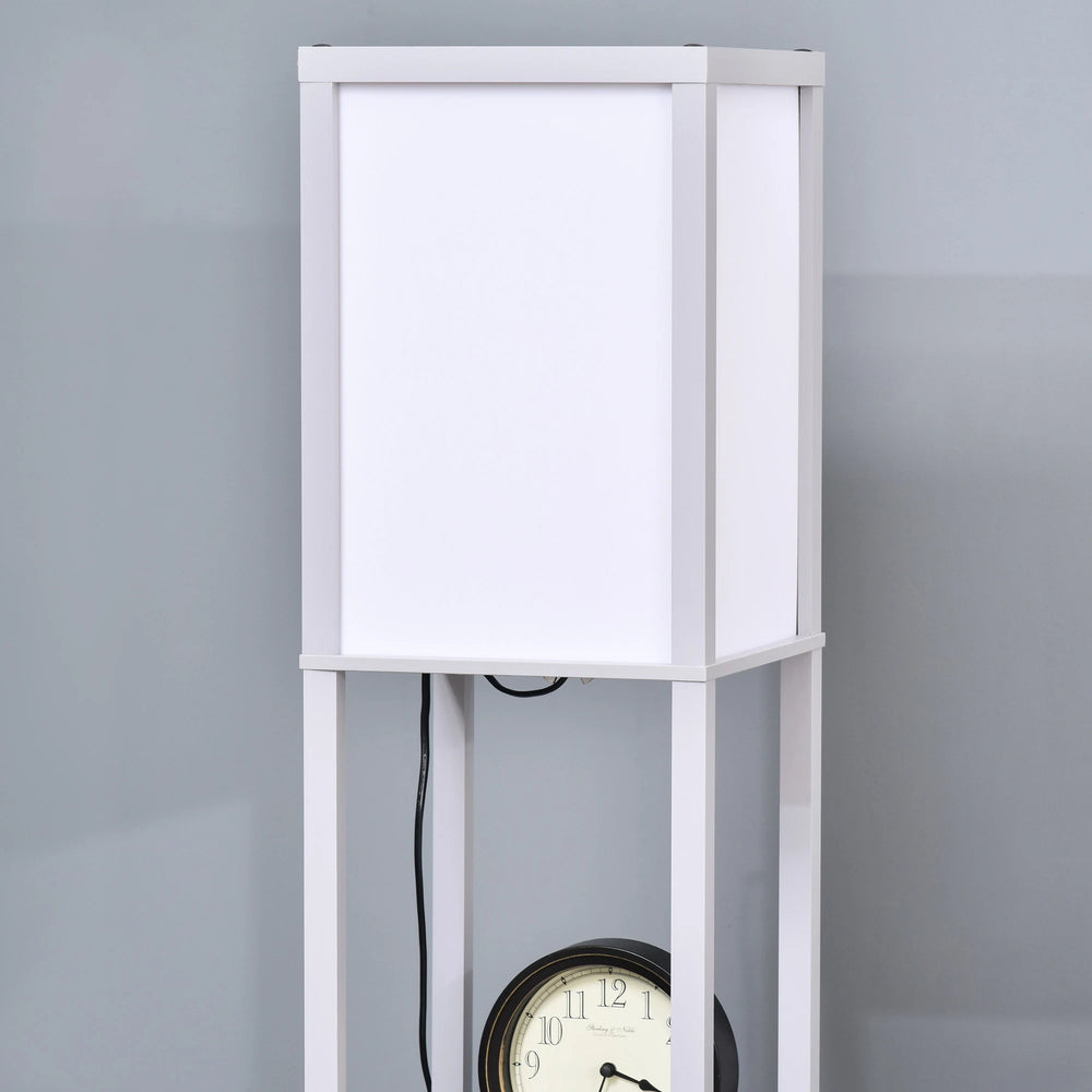 Illuminate your home the HOMCOM standing lamp, merging light, beauty, and storage elegantly and practically. Perfect for decor enthusiasts, this lamp offers three shelves for displays and a warm top light for a warm and inviting glow. Its sleek white shade complements any interior style, and the convenient foot switch ensures effortless operation. Crafted with a durable melamine coating, this lamp is a stylish and resilient addition to any living space, enhancing both ambiance and organization.