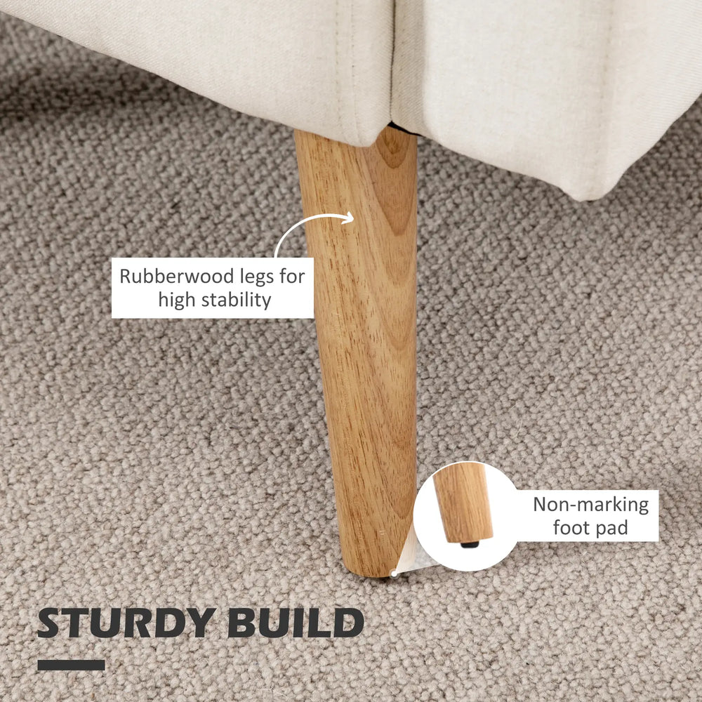 HOMCOM Accent Chair, Linen-Touch Armchair with Pillow, Upholstered Leisure Lounge Sofa for Living Room, Club Chair with Rubber Wooden Frame, Cream