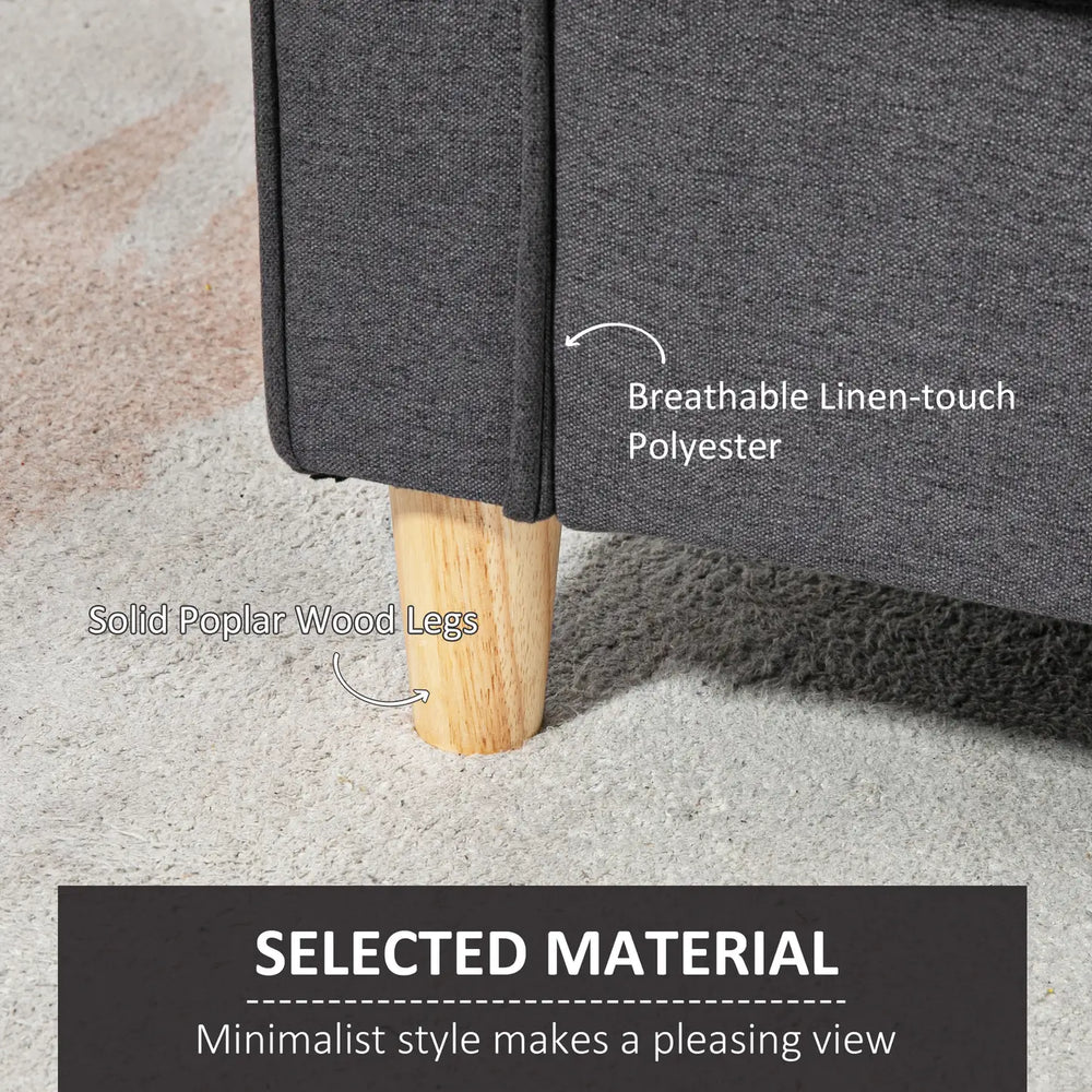 HOMCOM Compact Loveseat Sofa, Modern 2 Seater Sofa for Living Room with Wood Legs and Armrests, Dark Grey