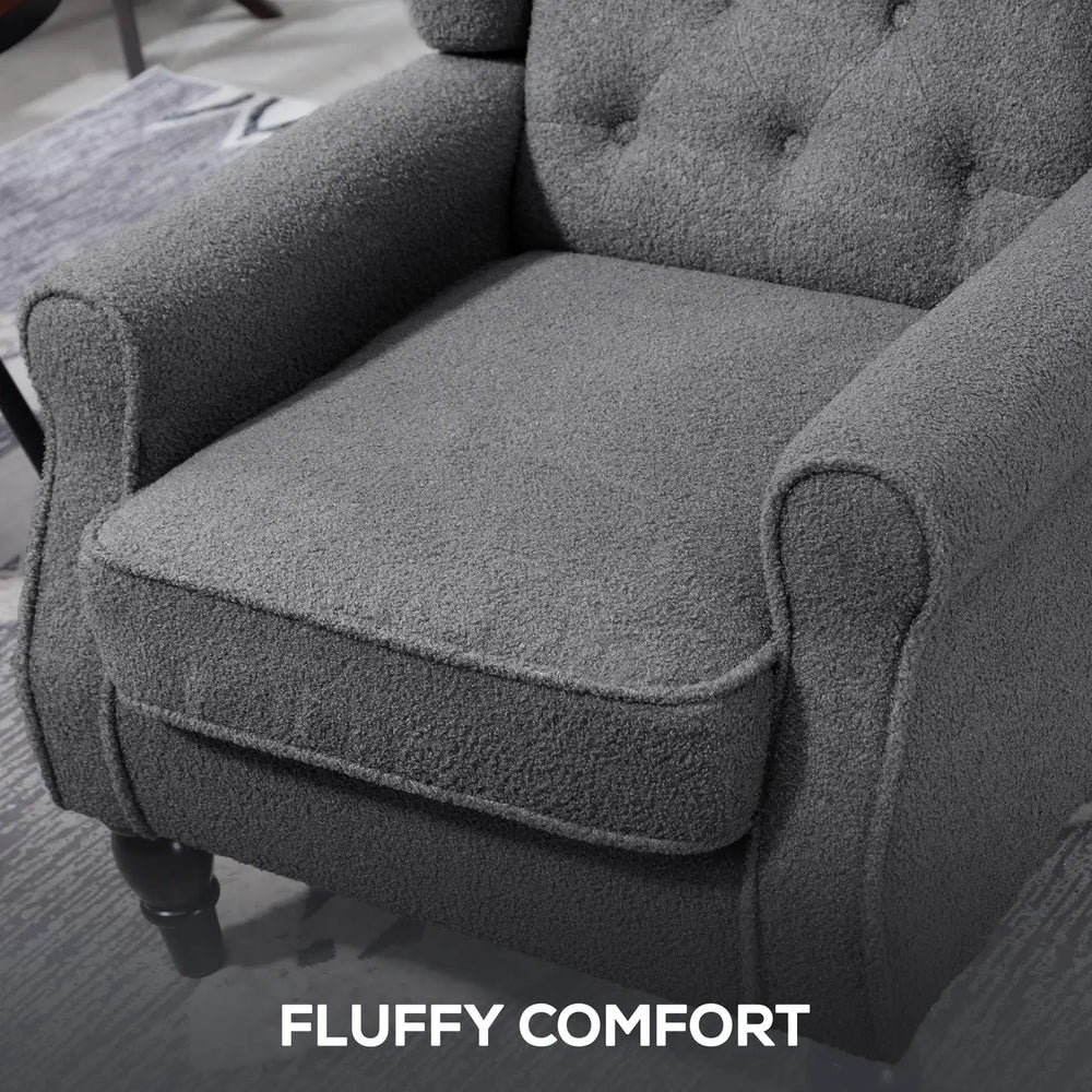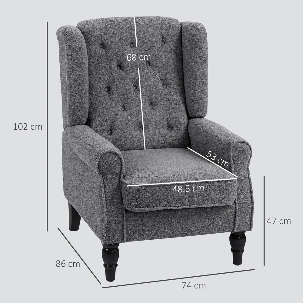HOMCOM Teddy Fleece Retro Wingback Chair - Grey