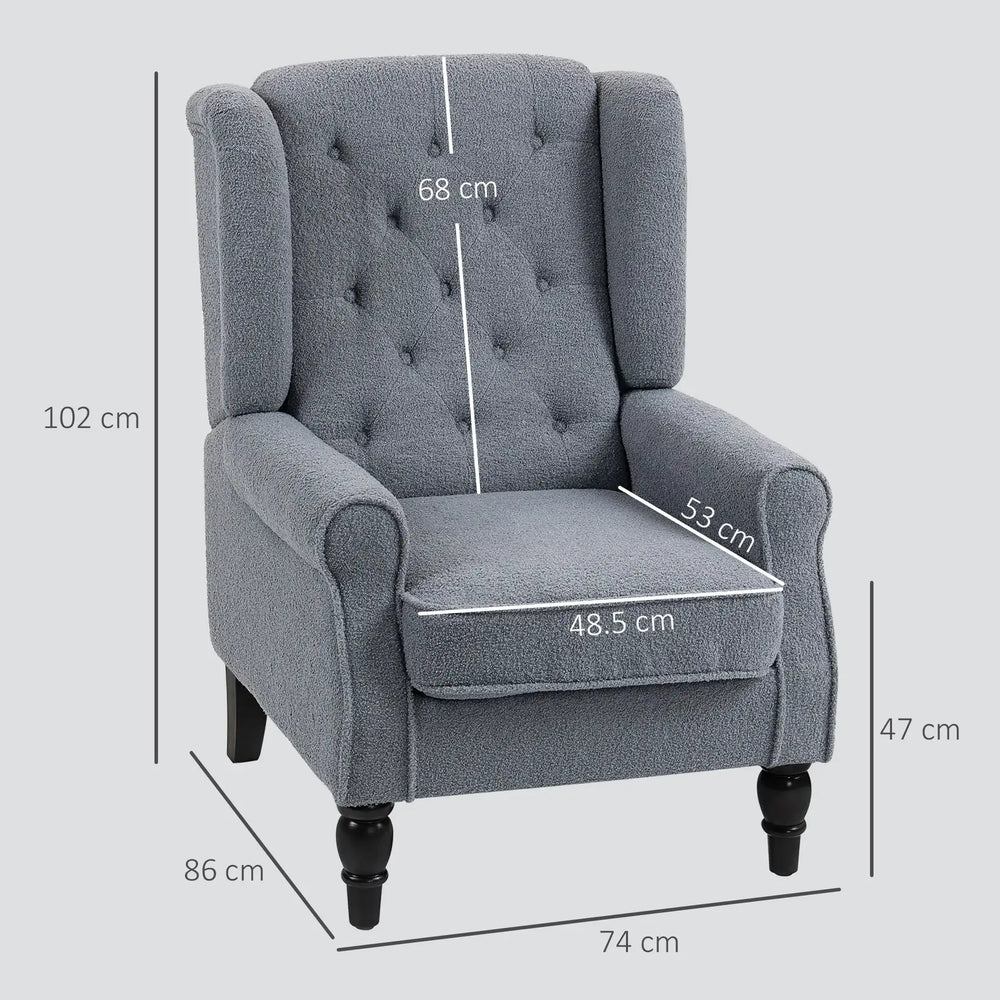 HOMCOM Wingback Accent Chair, Retro Upholstered Button Tufted Occasional Chair for Living Room and Bedroom, Grey is backordered and will ship as soon as it is back in stock.