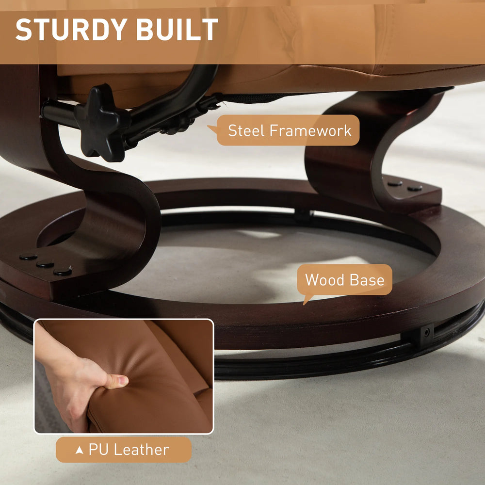 HOMCOM Faux Leather Reclining Chair and Footstool - Brown