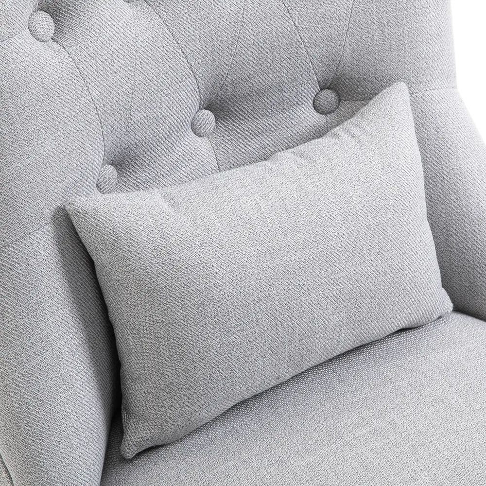 Sink into something comfortable without sacrificing on your precious home space with this accent chair, from HOMCOM. Linen-look fabric, the curved wooden legs and delicate button tufting on the back evokes a vintage style - a statement in any setting. Soft cushioned seat and curved backrest for comfort and support. Something different for this season and beyond.