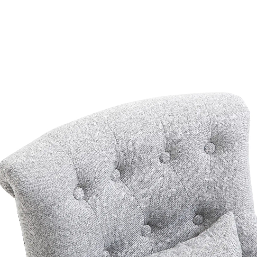 - Stylish retro design: Linen-look fabric and button tufting lend a neat, finished feel to the bedroom chair. The scrolled back and curved legs bring timeless character to the room
