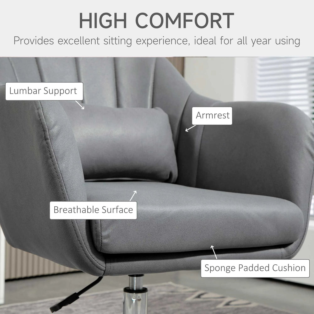 HOMCOM Swivel Microfibre Accent Chair for Living Room Contemporary Vanity Armchair with Adjustable Height Thick Cushion Lumbar Support Armrest for Bedroom Office Dark Grey