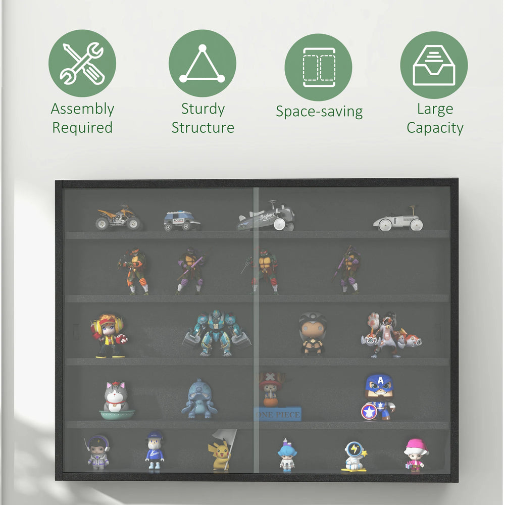 HOMCOM 5-Tier Wall Display Shelf Unit Cabinet w/ 4 Adjustable Shelves Glass Doors Home Office Ornaments 60x80cm Black