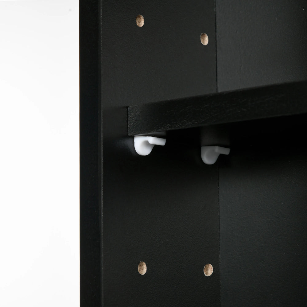 - Particle board frame: Ensures a tough and robust structure, making it safe and reliable for keeping everything displayed and in place on the wall.