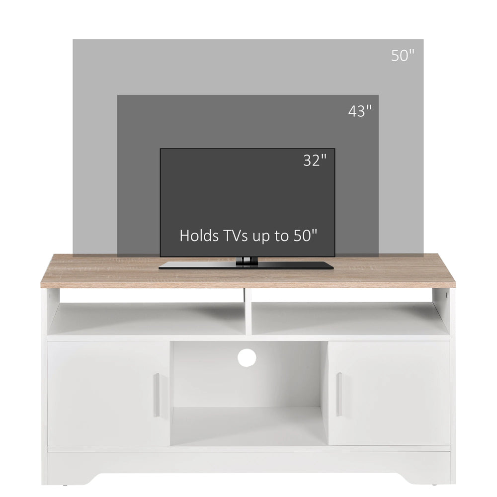 HOMCOM TV Stand Cabinet up to 50", Modern TV Unit with Storage, Open Shelves and Cable Management for Living Room, Bedroom, White