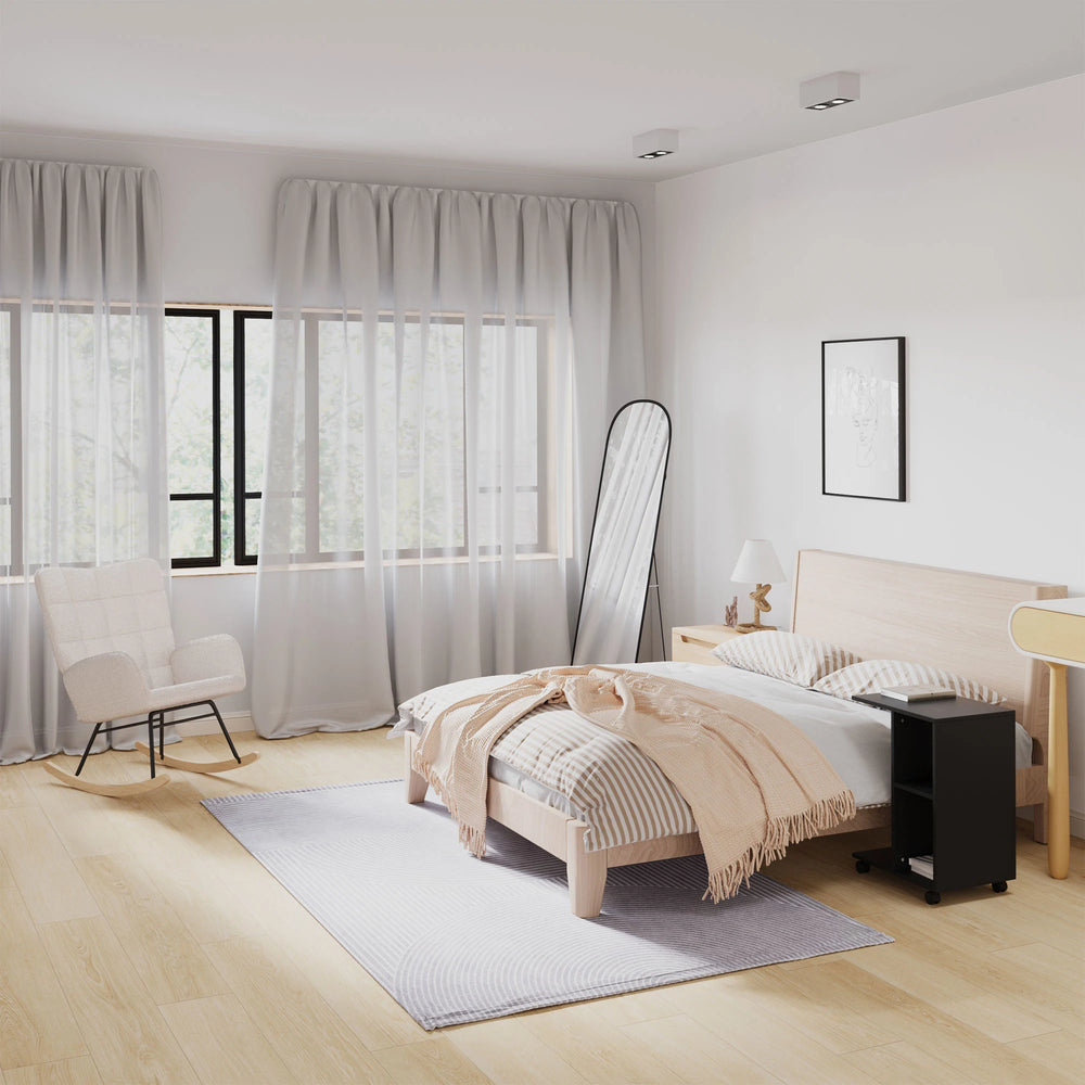 - Four wheels with solid structure: Allows easy movement. Two can be locked to keep in place. Made from MDF, the frame is stable and reliable for everyday use. Melamine coating for light protection, a smooth feel and easy cleaning.