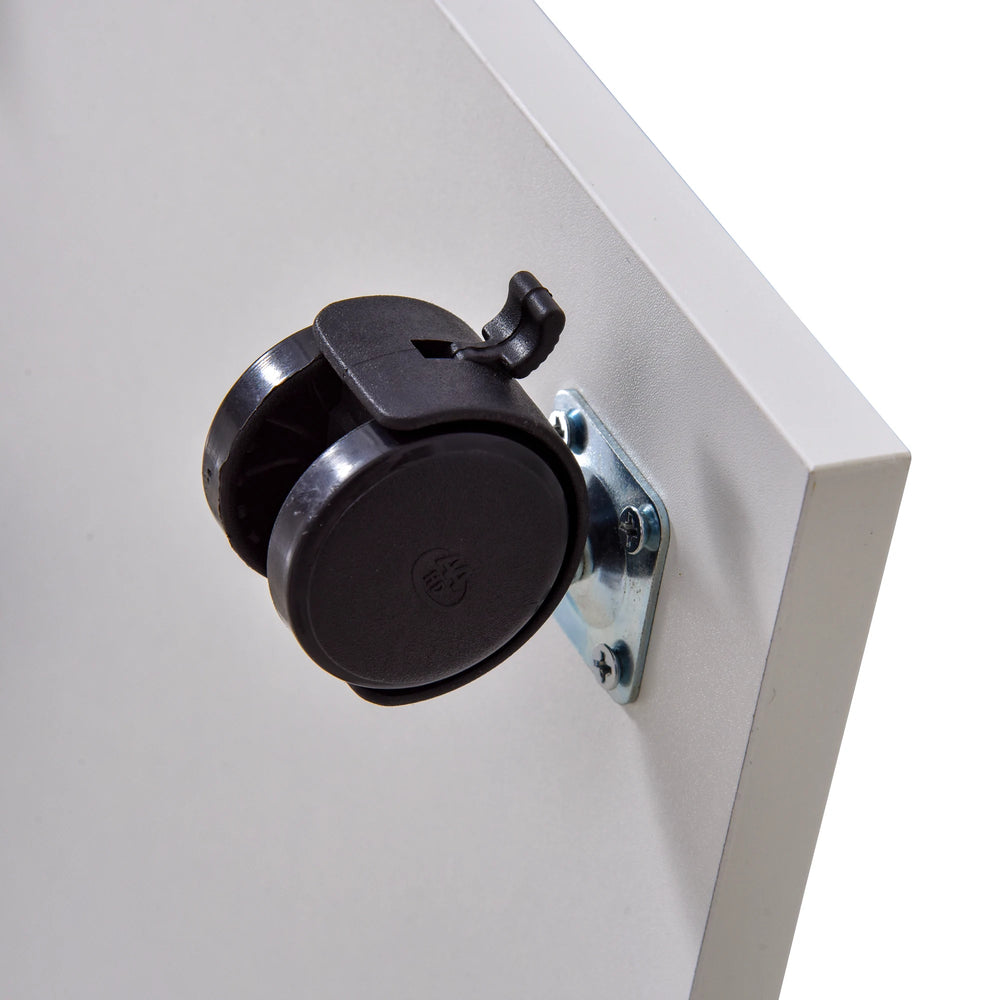 - Four wheels with solid structure: Allows easy movement. Two can be locked to keep in place. Made from MDF, the frame is stable and reliable for everyday use. Melamine coating for light protection, a smooth feel and easy cleaning.