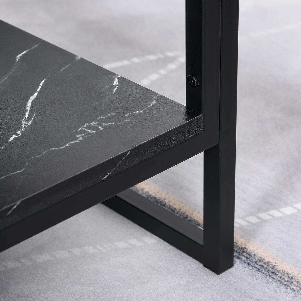 HOMCOM Coffee Table, Two-Tier Faux Marble Effect Centre Table with Metal Frame and Storage Shelf for Living Room, 106 x 50 x 45cm, Black