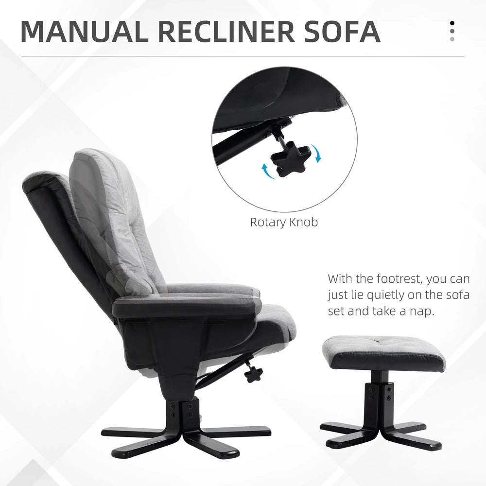 HOMCOM Fabric Recliner Sofa Armchair with footstool Swivel Sofa Grey