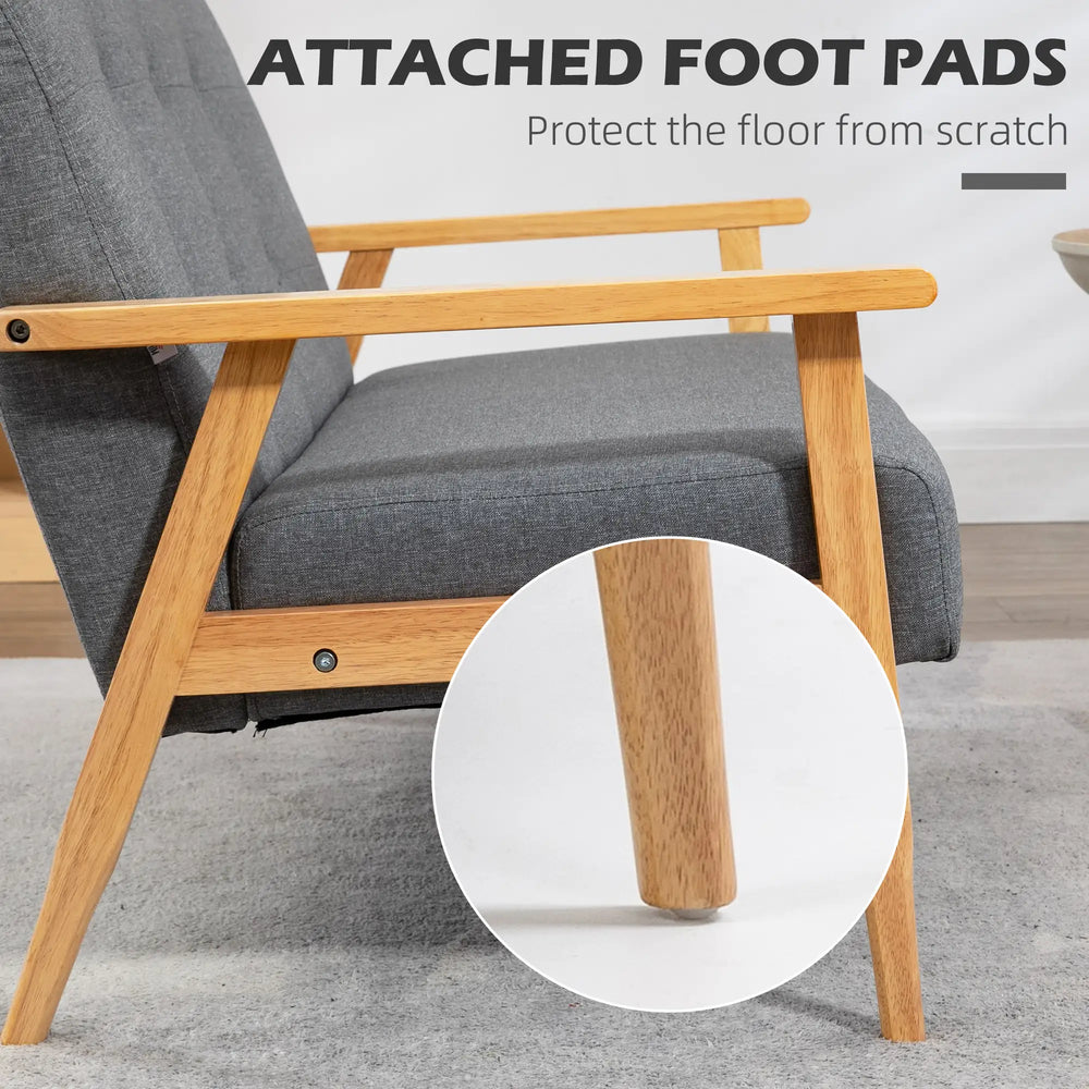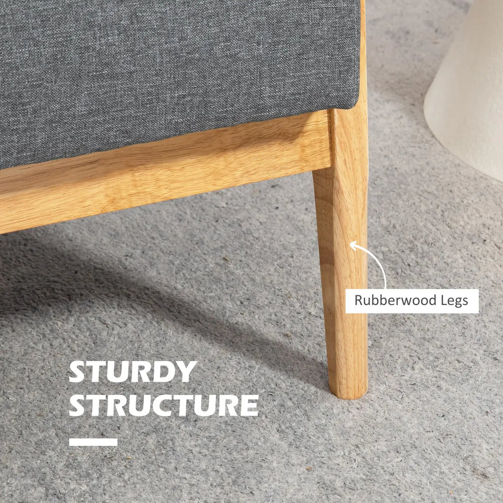 Adopt comfort the retro way with this grey sofa from HOMCOM. The frame is made from rubberwood for a sturdy structure, in a natural finish for versatility. It pairs wonderfully with the grey linen seat and back cushion, both of which are filled with thick padding for comfort. The button tufts on the back keep the upholstery taut, whilst adding to the style. The small couch is finished with non-slip feet for extra floor protection. It's time to fall in love with your living room all over again.