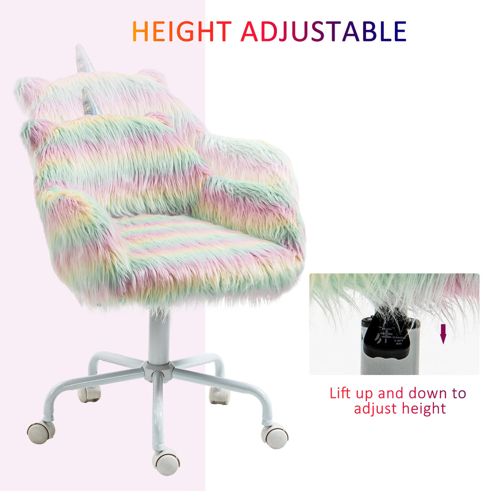 Vinsetto Unicorn Home Office Chair, Height Adjustable Fluffy Desk Chair with Armrests and Swivel Wheels, Colourful