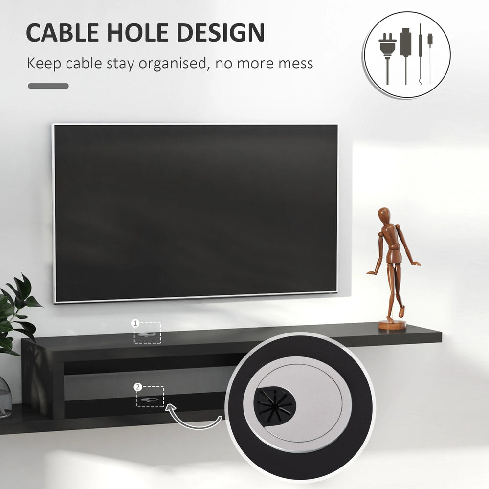 HOMCOM Floating TV Unit, Wall Mounted TV Stand with Open Shelf and 2 Cable Holes, Entertainment Unit for Living Room, Black