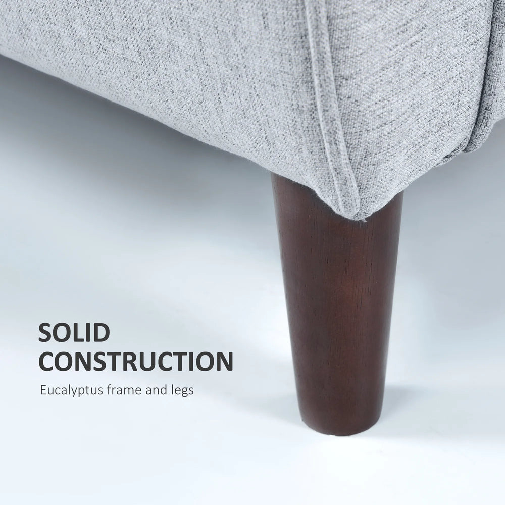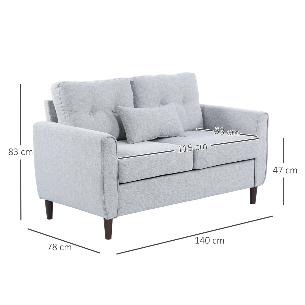 HOMCOM 2 Seater Sofa with Spring Cushion, Fabric Sofa with Wooden Legs, Modern Love Seat for Living Room, 140cm Width Tufted Couch for Bedroom, Light Grey