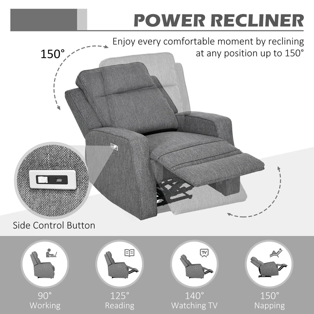 HOMCOM 150 Electric Reclining Chair, with USB port and Footrest - Charcoal Grey